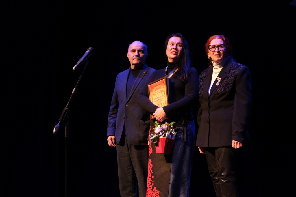 Першою на сцену для нагородження міжнародним "Орденом Благодійника" запросили меценатку, волонтерку, керуючу партнерку мережі ресторанів азійської та європейської кухні "Євразія" Оксану Тихоненко.