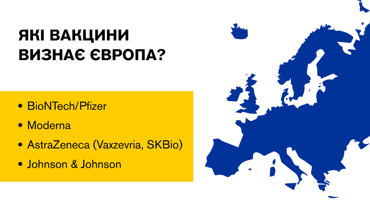 Зверніть увагу! Європа приймає не всі вакцини, які застосовуються в Україні. Так, в деяких європейських країнах вакцина CoronaVac не підходить для перетину кордону.