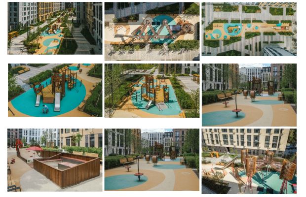 Архітектори Hip Park та «Архіматика» розгорнули посеред столичного житлового кварталу оригінальний ігровий комплекс з елементами мотузкового парку та підвісними мостами. За словами співзасновника Hip Park Дмитра Тараби, цей проєкт багато в чому став визначальним для компанії. З самого початку замовники KAN Development попросили заповнити досить великий простір між будинками, щоб майданчик став гармонійним компонентом єдиного архітектурного ансамблю. У результаті фахівці вирішили створити й встановити об'ємні, але водночас витончені «повітряні» конструкції, що досягають 11 м заввишки.
