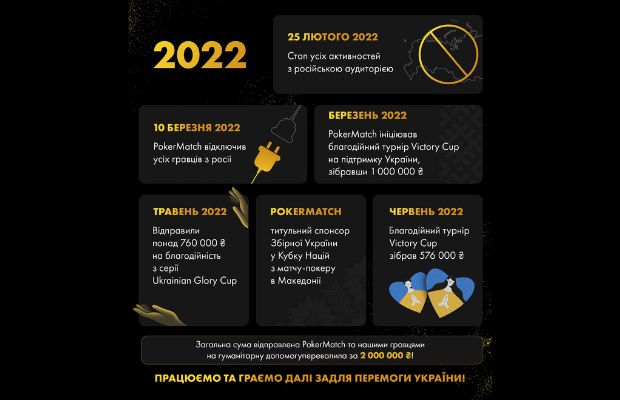 Компанія відсвяткує визначну дату створення руму разом зі своїми клієнтами. Найкрупніший івент, який пройде 23 липня буде також благодійним — весь зібраний рейк PokerMatch відправить на гуманітарні потреби України у війні з агресором.