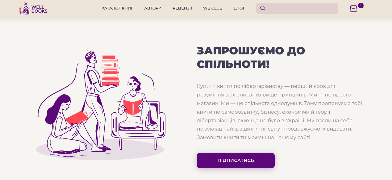 WELL BOOKS — це не просто новий книжковий інтернет-магазин. Насправді, це трохи більше, адже він об’єднує спільноту однодумців — людей, які цікавляться економікою. Асортимент цього сайту буде цікавий всім, хто хоче знати більше про вільну економіку та її основні принципи. І попри те, що онлайн-ринок книжкових магазинів наразі дуже насичений пропозиціями, у WELL BOOKS є всі шанси зайняти лідируючі позиції у своєму секторі.