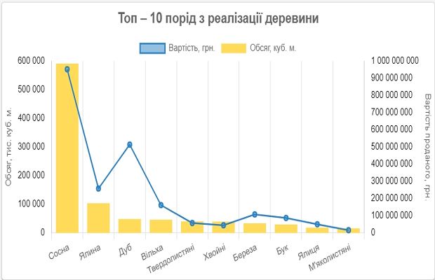 Попит мали такі породи як сосна, ялина, дуб, вільха, твердолистяні та інші.