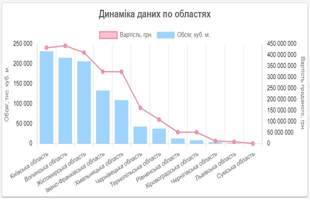 Найбільші об’єми реалізації були у Київській, Волинській, Житомирській, Івано-Франківській та Хмельницькій областях.